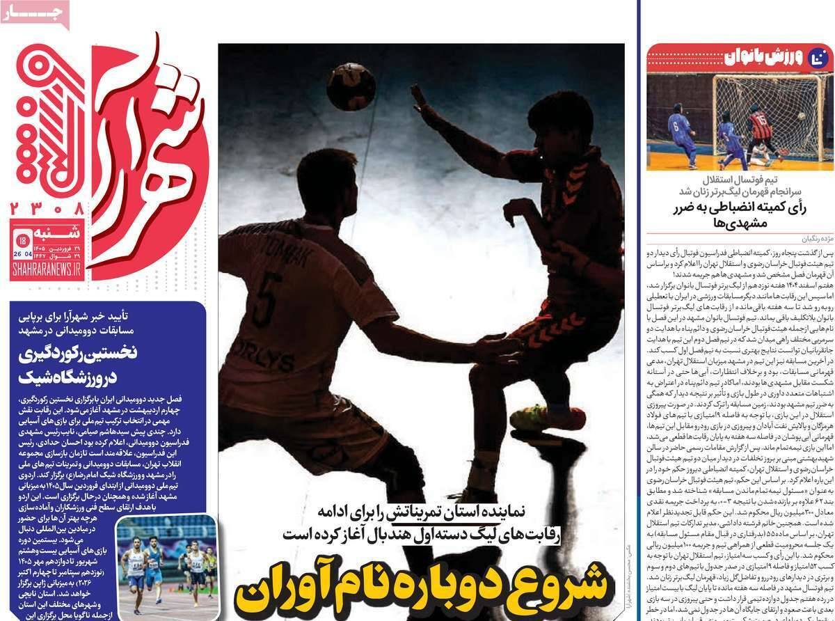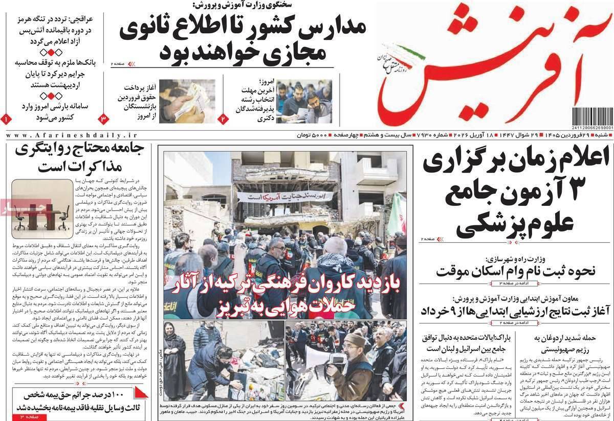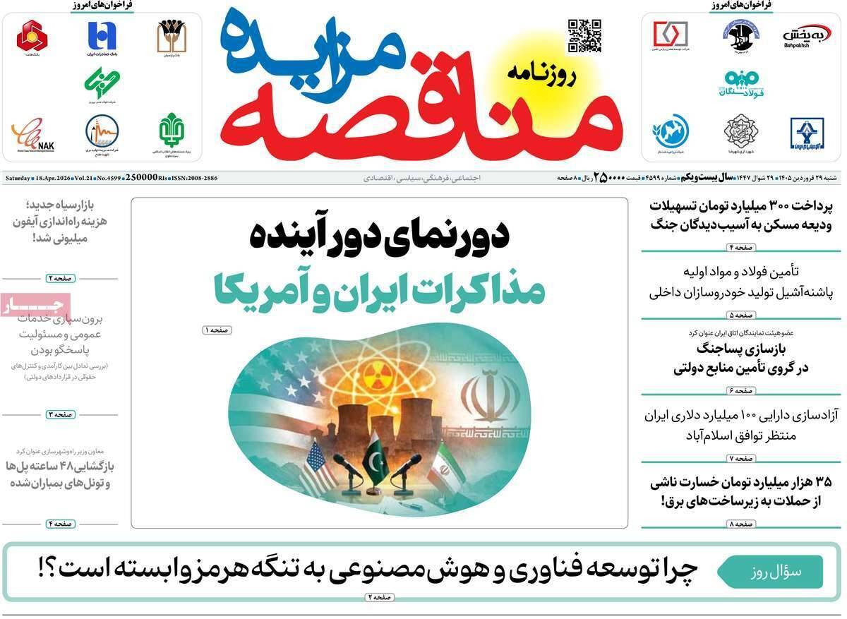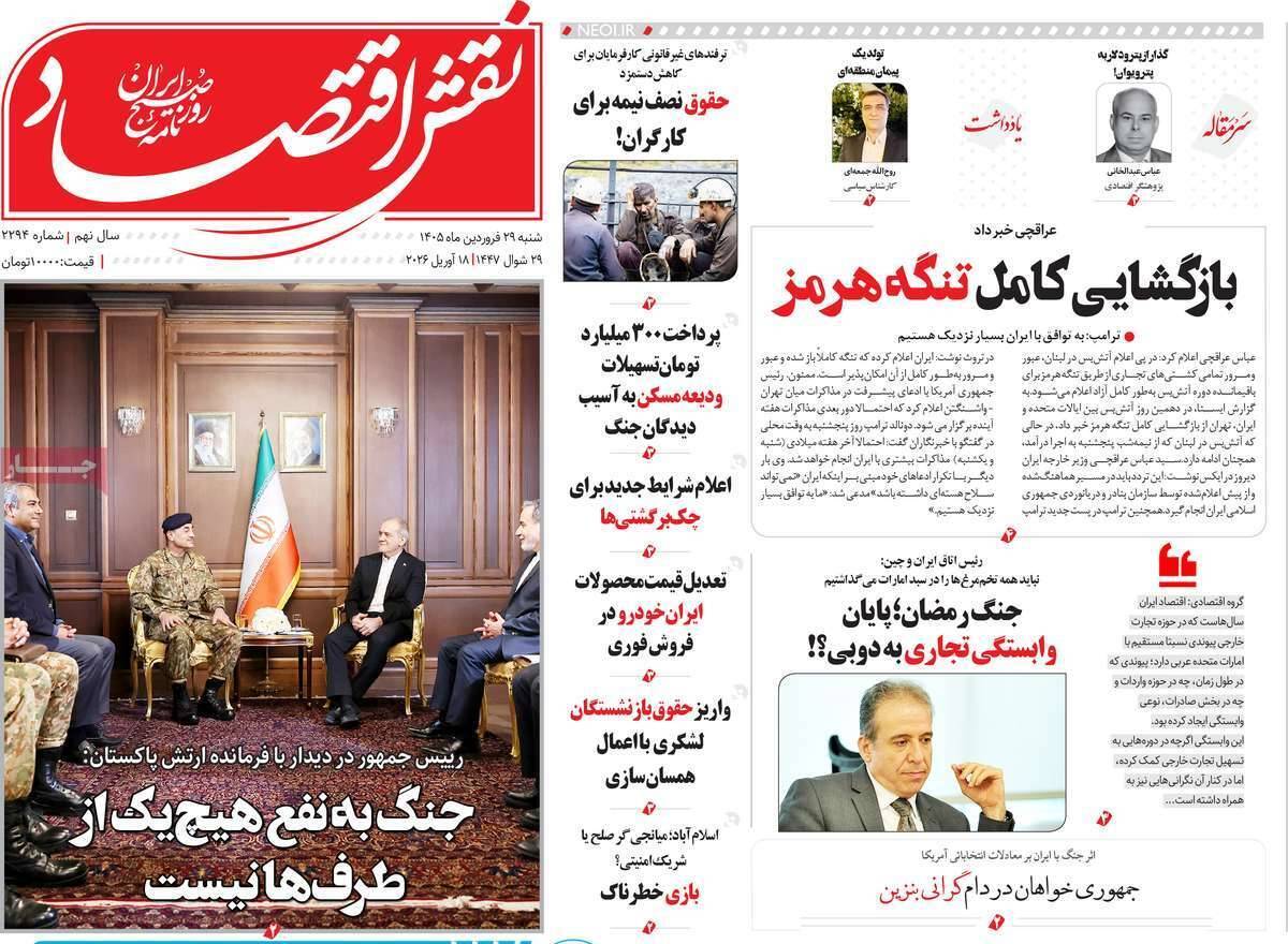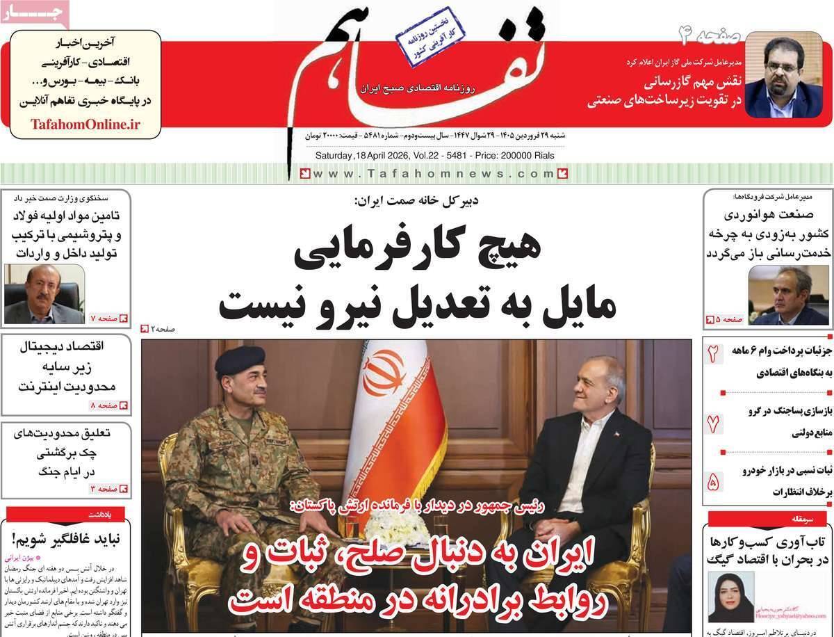 صفحات نخست روزنامههای شنبه ۲۹ فروردین ۱۴۰۵