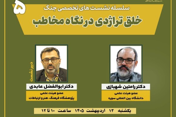 پژوهشکده هنر پژوهشگاه فرهنگ، هنر و ارتباطات، نشست خلق تراژدی در نگاه مخاطب از سلسله‌نشست‌های تخصصی جنگ را برگزار می‌کند.