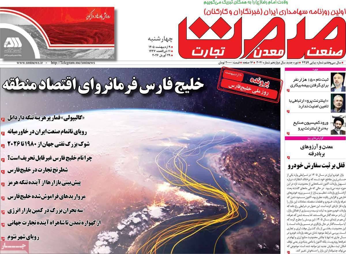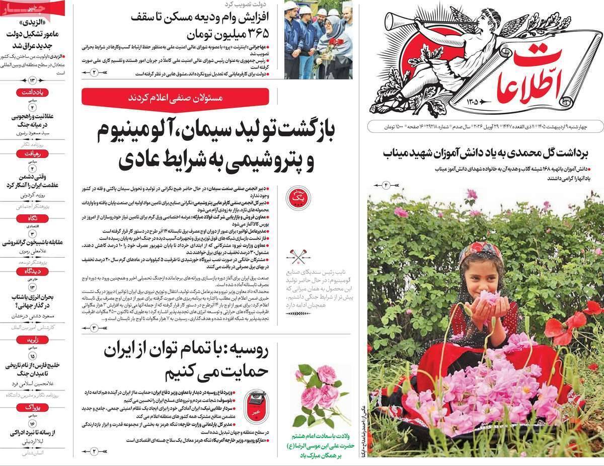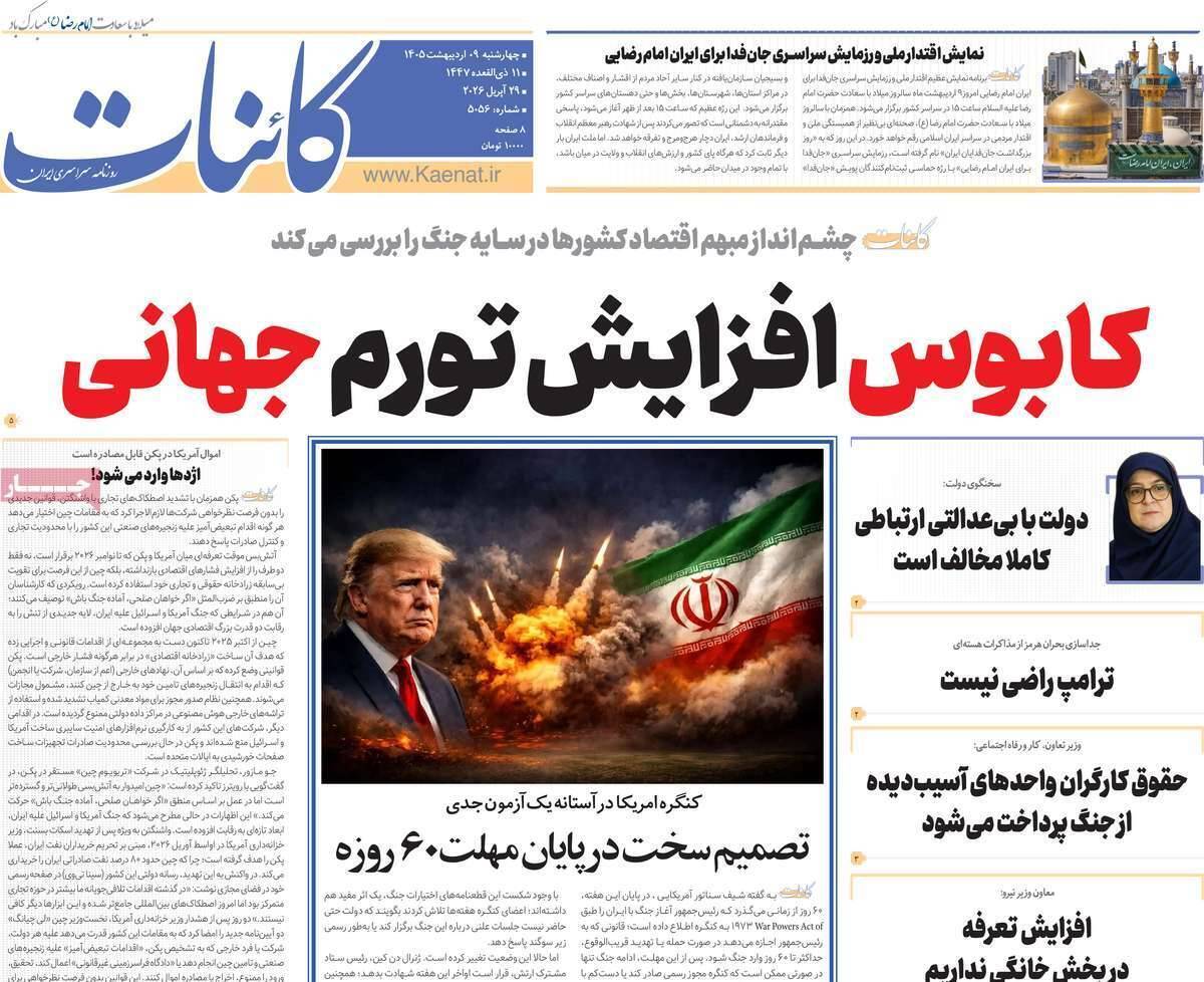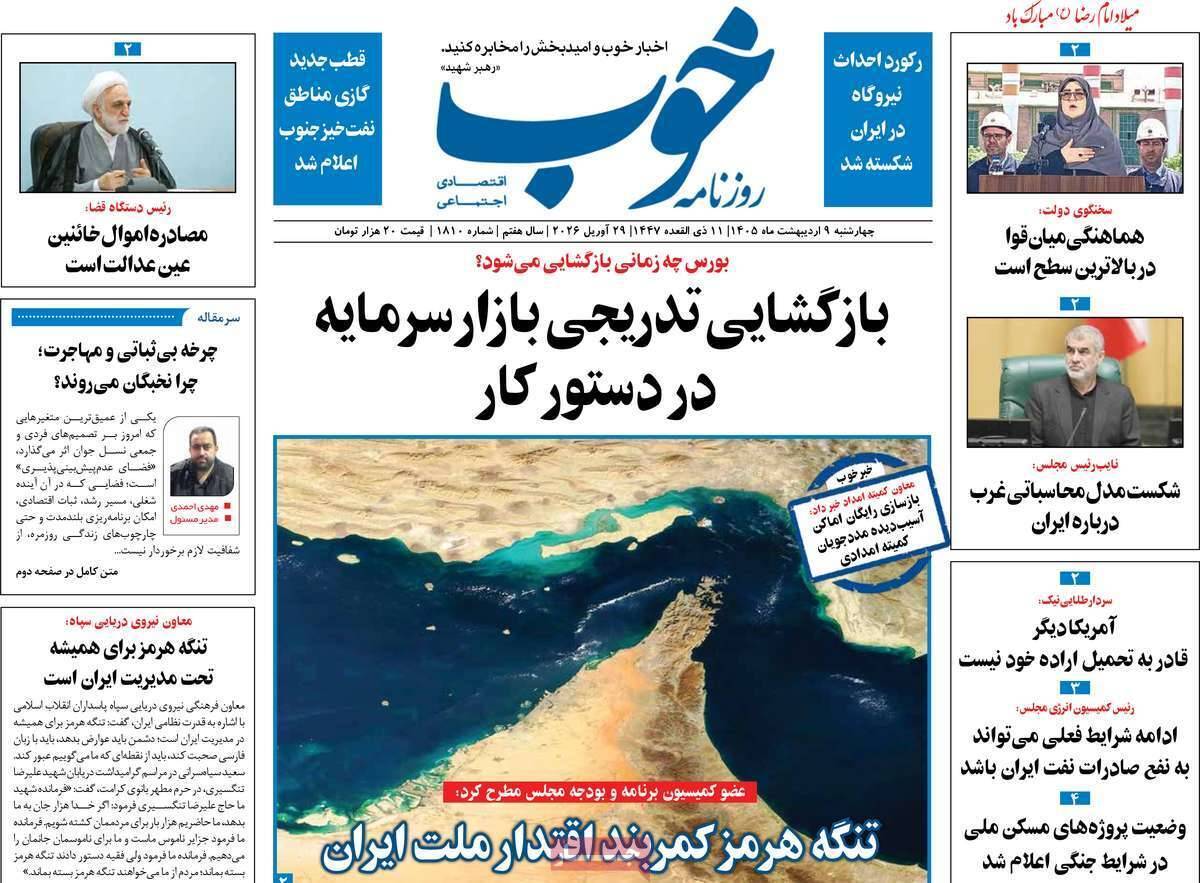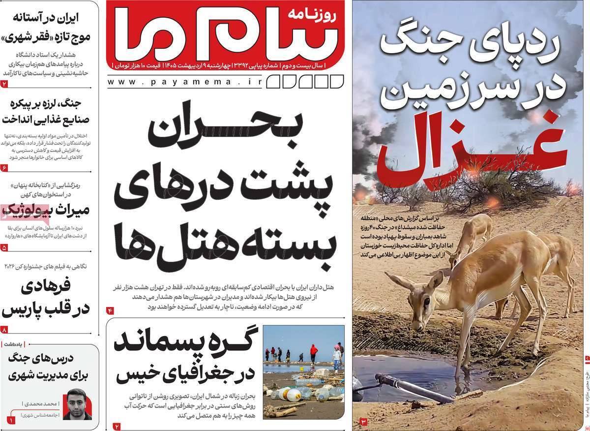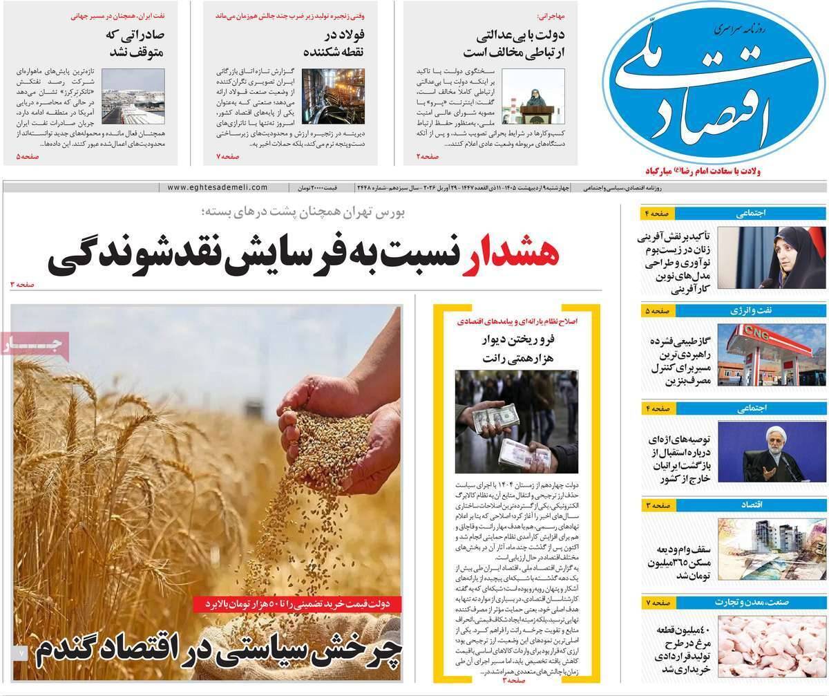 صفحات نخست روزنامههای چهارشنبه ۹ اردیبهشت ۱۴۰۵