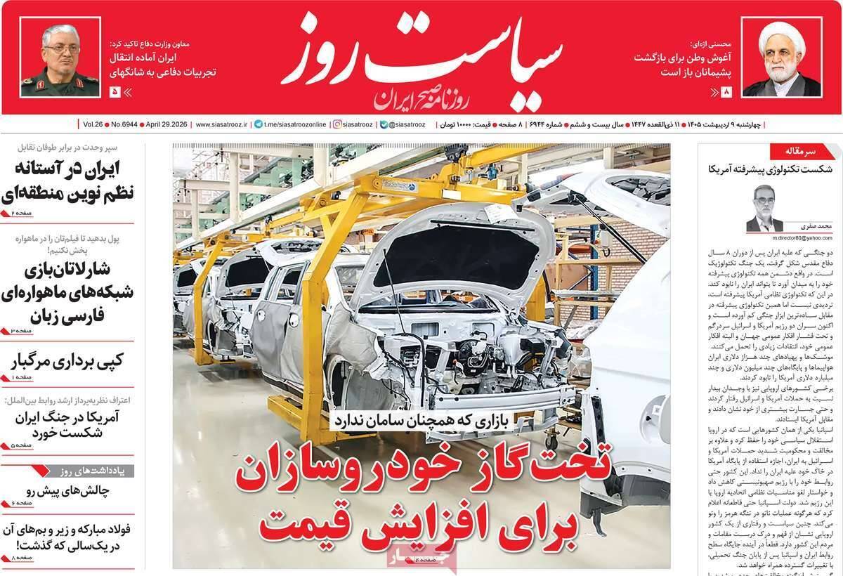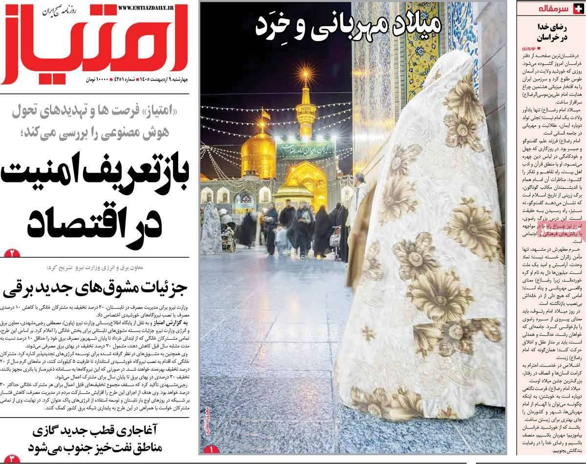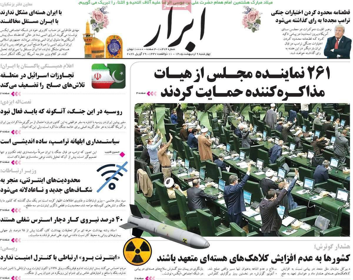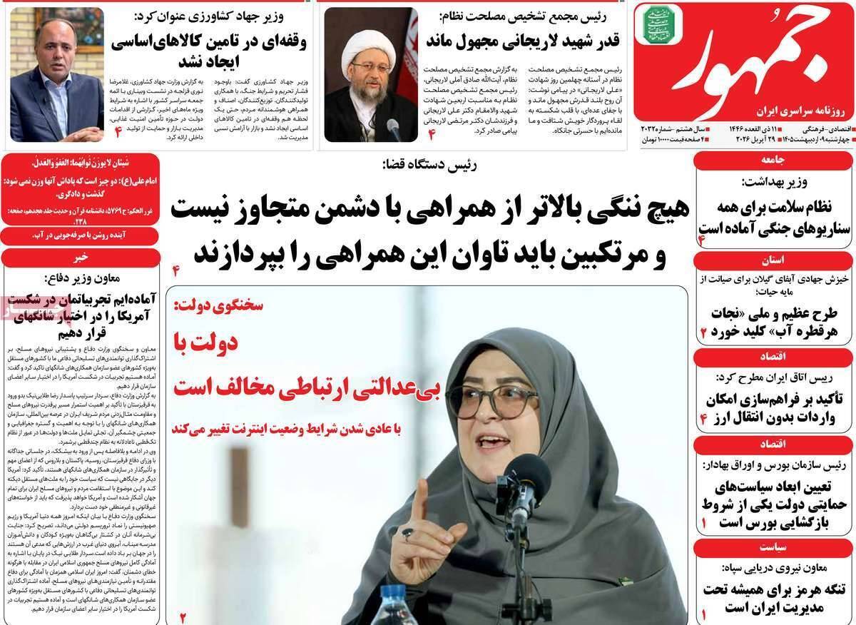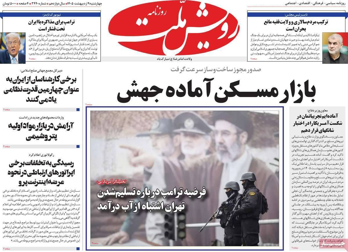 صفحات نخست روزنامههای چهارشنبه ۹ اردیبهشت ۱۴۰۵