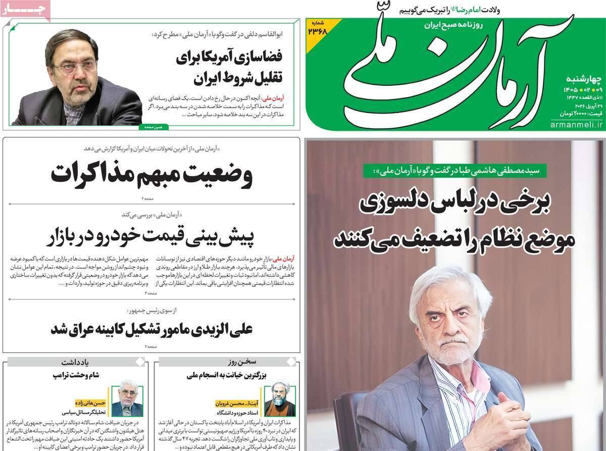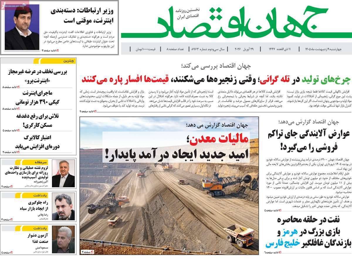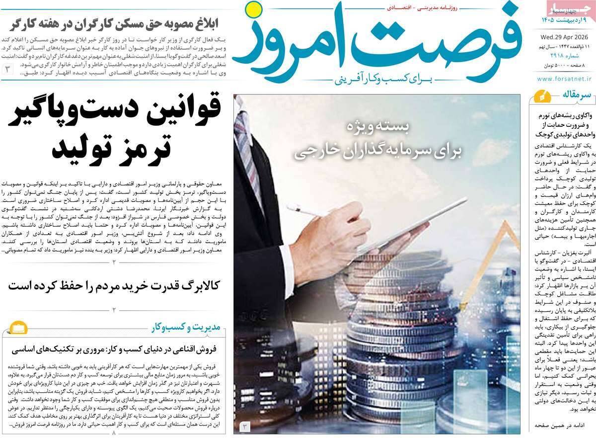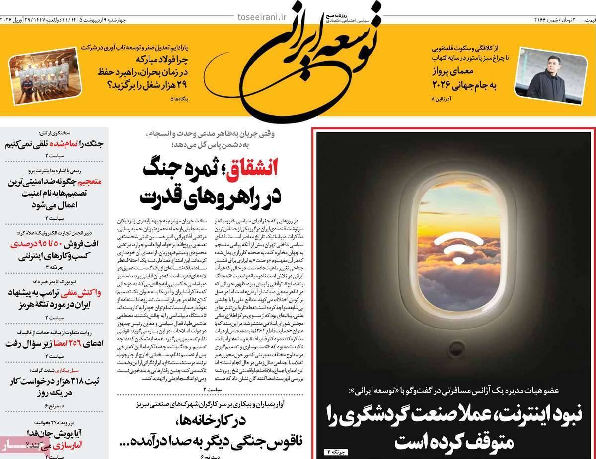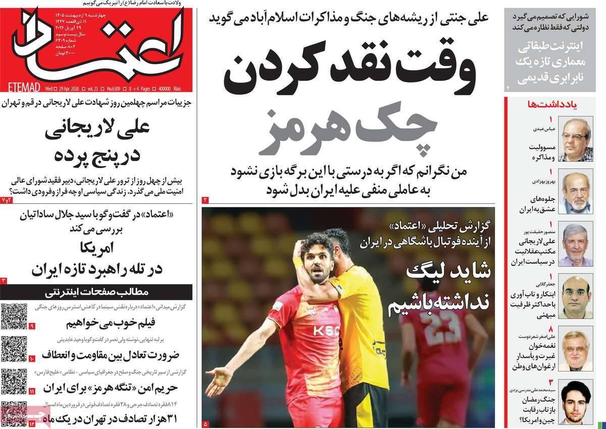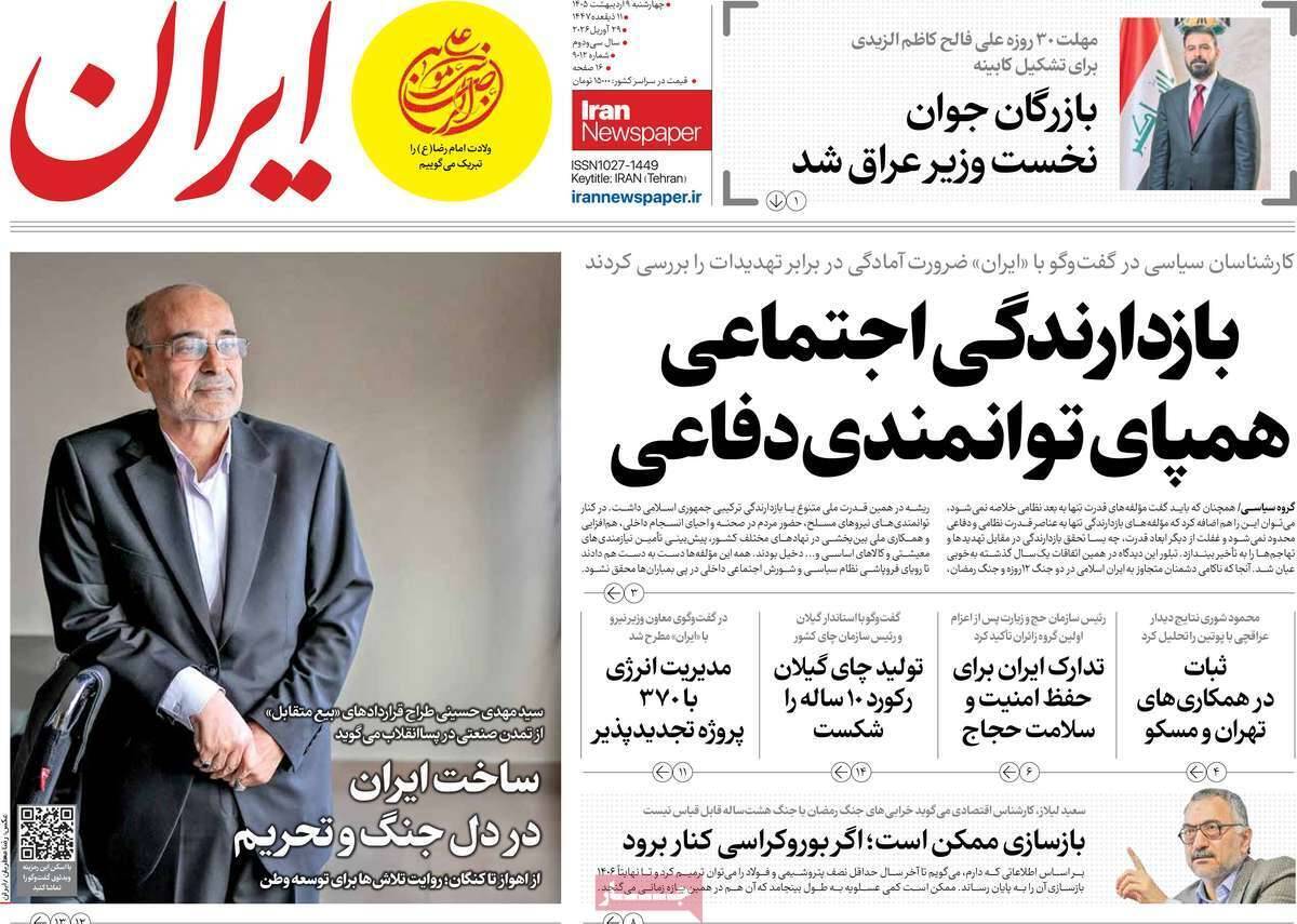 صفحات نخست روزنامههای چهارشنبه ۹ اردیبهشت ۱۴۰۵