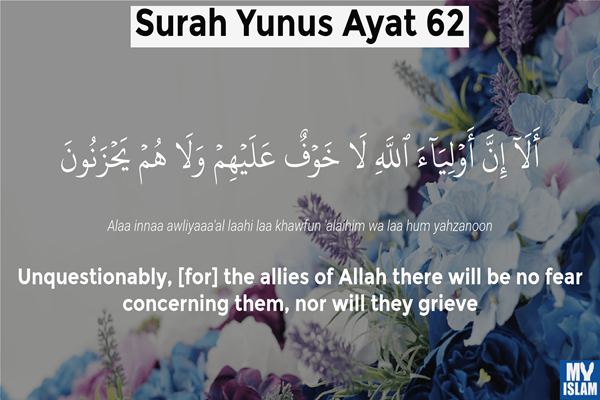 أَلَآ إِنَّ أَوْلِيَآءَ ٱللَّهِ لَا خَوْفٌ عَلَيْهِمْ وَلَا هُمْ يَحْزَنُونَ