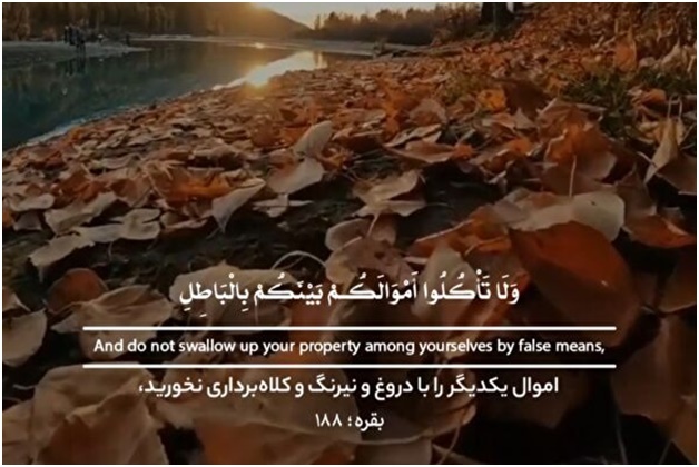 IQNA - Kada ku ci dukiyõyinku a tsakãninku da ƙarya, kuma ku sãdu da ita zuwa ga mahukunta dõmin ku ci wani yanki daga dũkiyõyin mutãne da zunubi alhãli kuwa kũ, kuna sane. Baqarah Aya ta 188