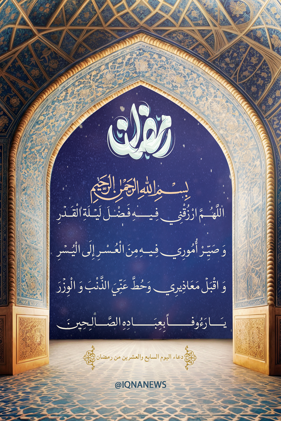 "Oh Dio, riversa su di me le benedizioni della Notte di Qadr (del Destino), fa che le mie difficoltà e i miei problemi siano superati, accetta il mio pentimento e liberami dai miei peccati e azioni malvagie. Oh Colui che è Misericordioso verso i Suoi buoni servitori”.