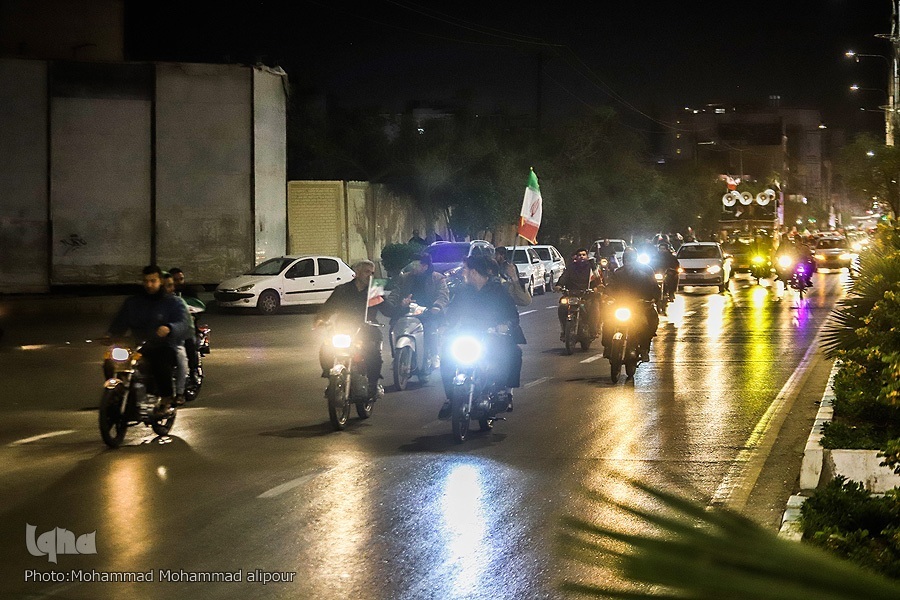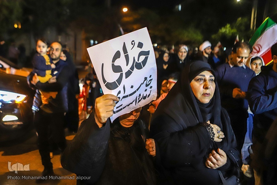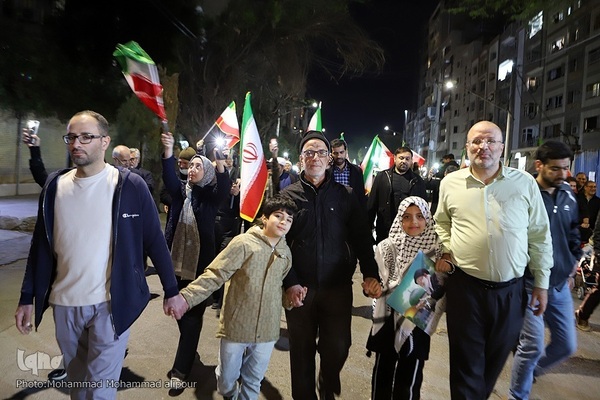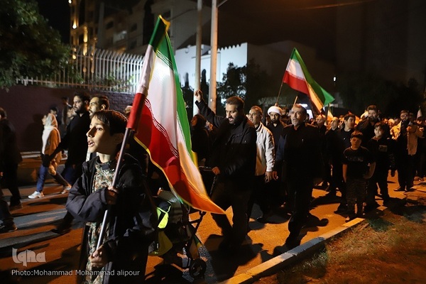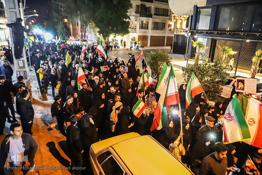 Nagbaba sa mga lansangan ang mga mamamayan ng Ahvaz kagabi upang kondenahin ang mga pag-atake ng mga Amerikano-Zionista at suportahan ang Operasyong Tunay na Pangako 4, habang isinisigaw ang mga salawikain ng paghihiganti.