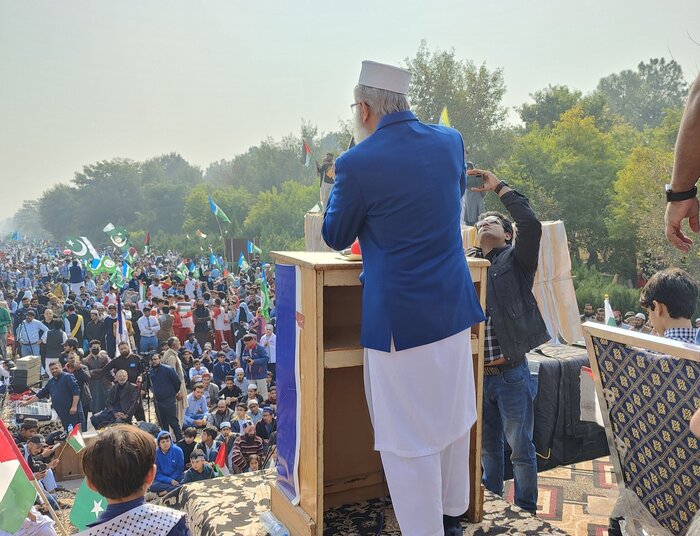 په دغې ولولناکې غونډې کې د جماعت اسلامی امیر سراج الحق هم پخپلې وینا کې ووئيل، د پاکستان د ماشومانو او زلمیانو دغزې او فلسطین ماشومانو او مظلوم ملت ته پیغام دا دی چې مونږ تر وروستیو شیبو پورې ستاسو په څنګ کې ولاړ یوو. هغه ټينګار وکړ، مونږ یو ځل بیا د فلسطین د شجاع او میړنیو ځوانو مبارزانو په مقابل کې د وحشي صهیونیسټي رژيم د جنایتکارو پوځيانو د سپیرې او بې شرمې ماتې شاهدان یوو، په عین حال کې د فلسطین ولس او مقاومتي ډلې ټپلې د اسلامی هیوادونو سملاسي مرستو ته ډیره اړتیا لري.