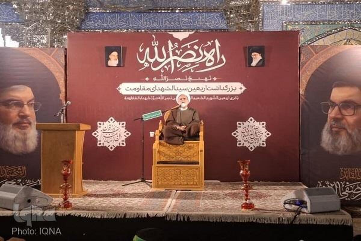 Katika hotuba yake, mwanachuoni wa seminari na mwakilishi wa Baraza la Dunia la Ahl-ul-Bayt (AS) Hujjatul Islam Alireza Imani Moqaddam alifafanua juu ya ushujaa na tabia ya Nasrallah.