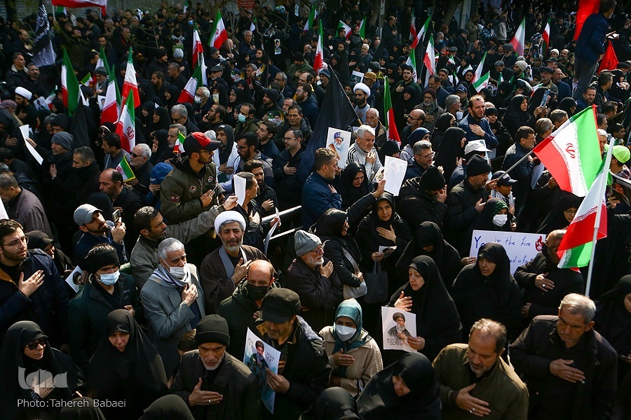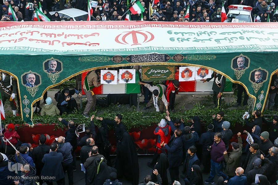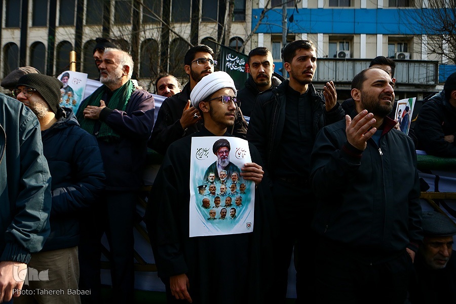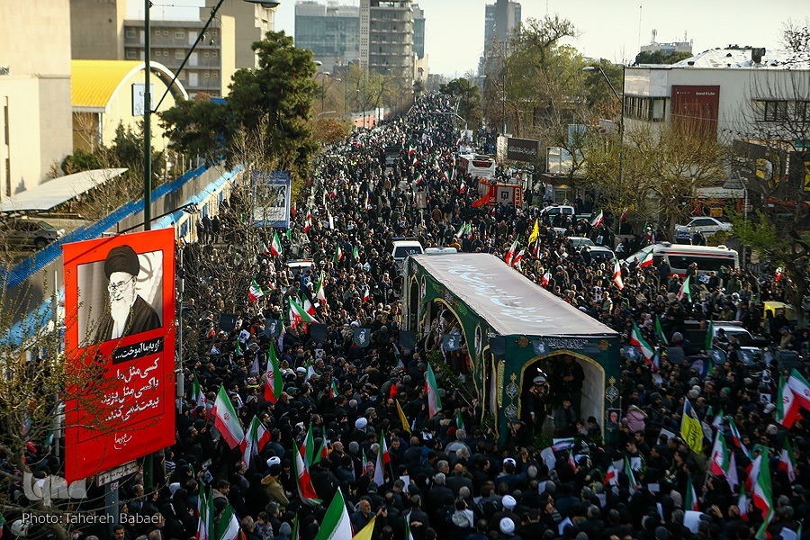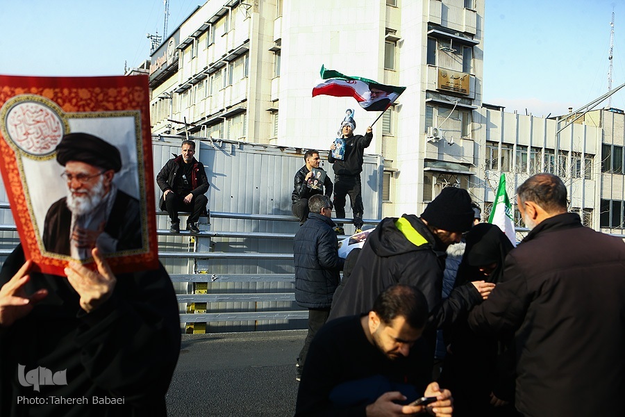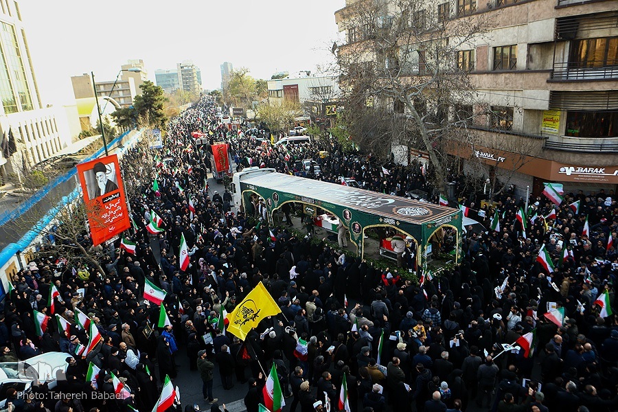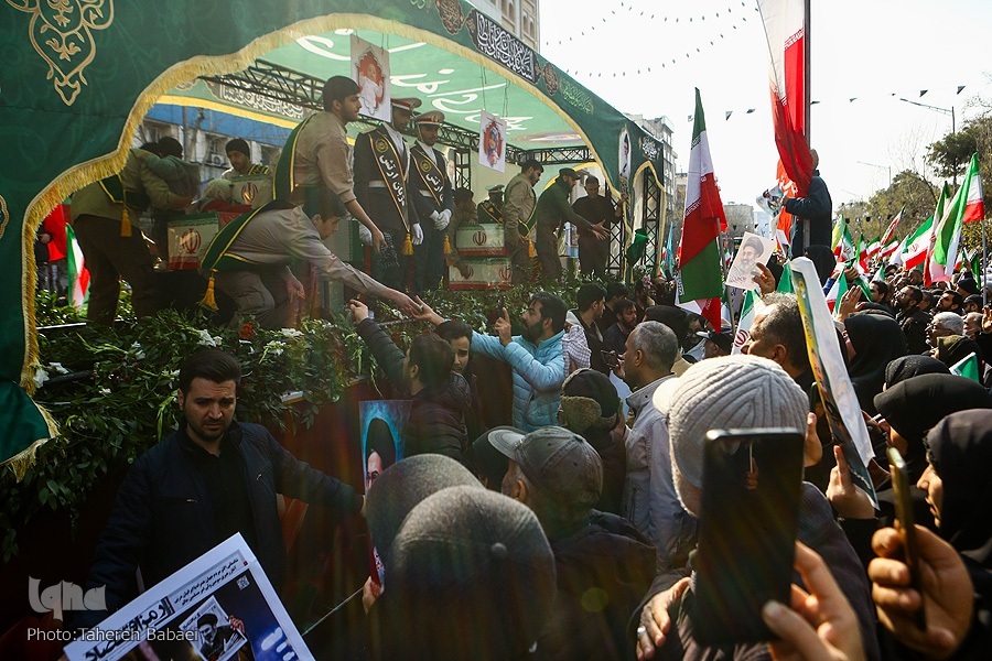 Kwa mujibu wa taarifa, wananchi walifika uwanjani tangu kabla ya kuanza rasmi kwa hafla hiyo saa saba mchana, na idadi ya waliohudhuria iliendelea kuongezeka kila dakika ilivyopita. Kituo cha treni ya chini ya ardhi cha Enqelab kilijaa waumini na wananchi wanamapinduzi, ambapo kila treni ilileta makundi makubwa ya wakazi wa mji mkuu kuelekea mahali pa kuanzia safari ya mazishi.