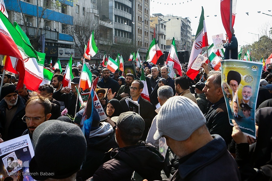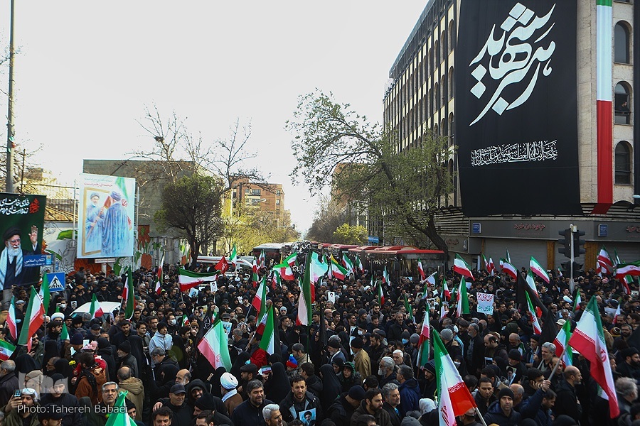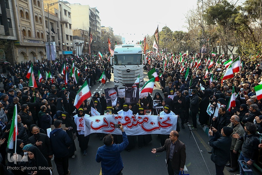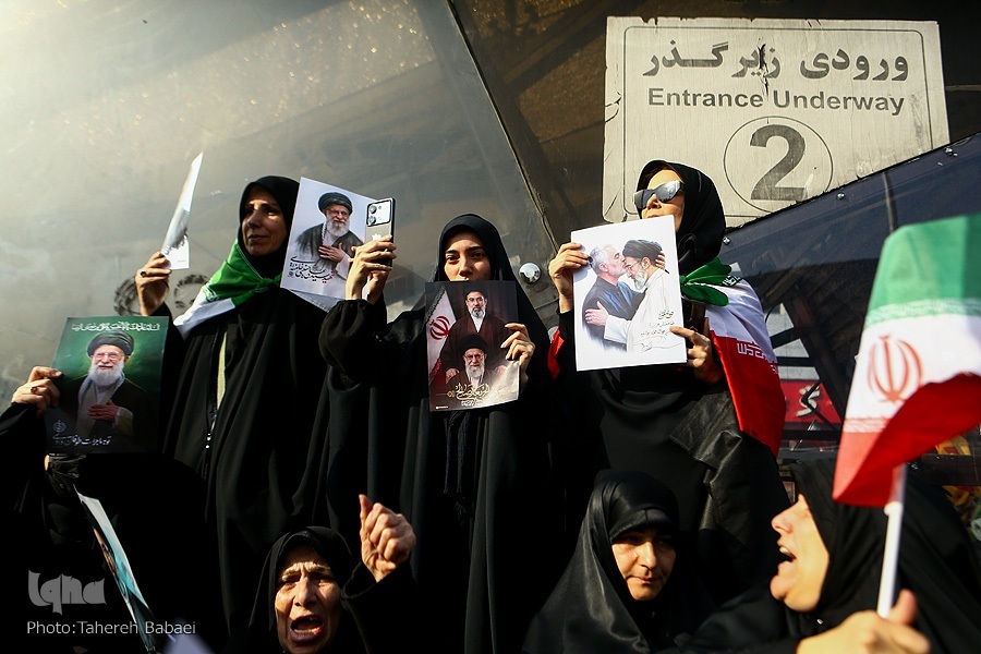 Katika hafla hiyo, wananchi walithibitisha tena utii wao kwa kiongozi wa tatu wa Mapinduzi ya Kiislamu, Ayatullah Sayyid Mojtaba Khamenei. Wakiwa wameinua mikono yao juu, walipaza sauti wakisema: “Ewe kiongozi mwadilifu na shujaa, tuko tayari, tuko tayari.”
