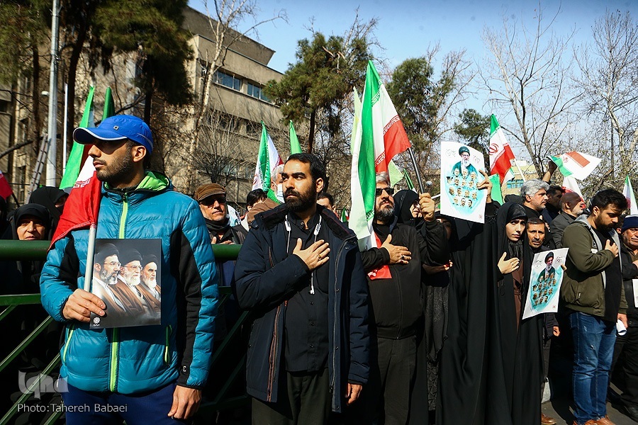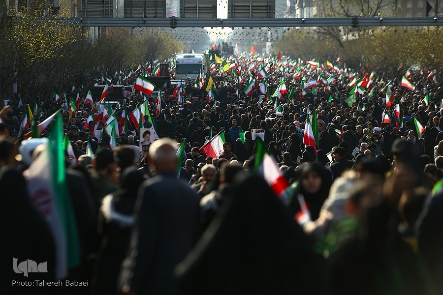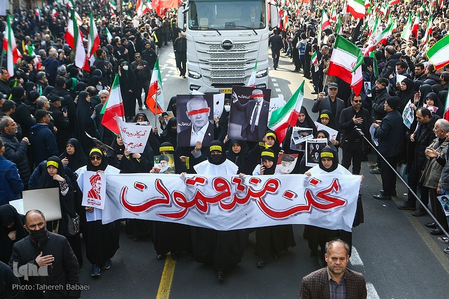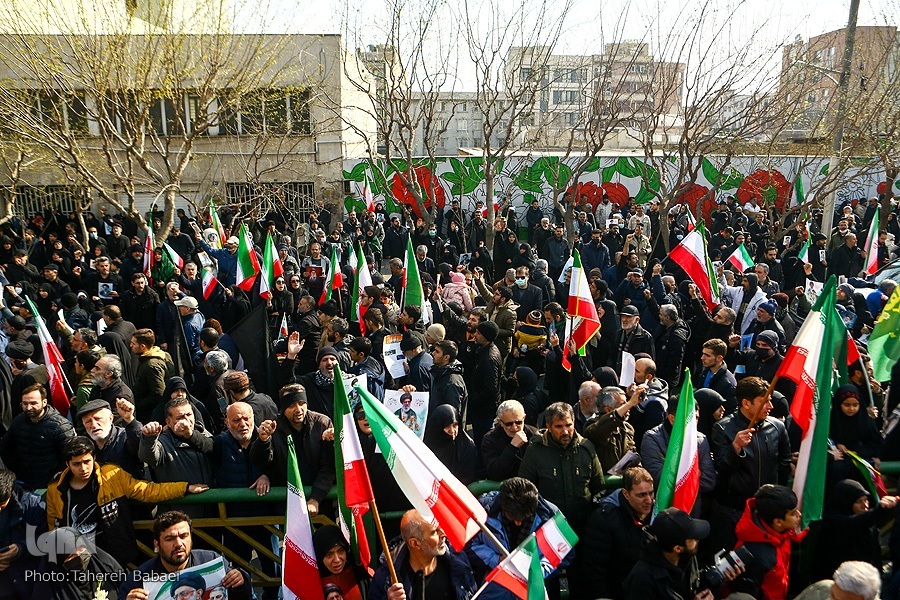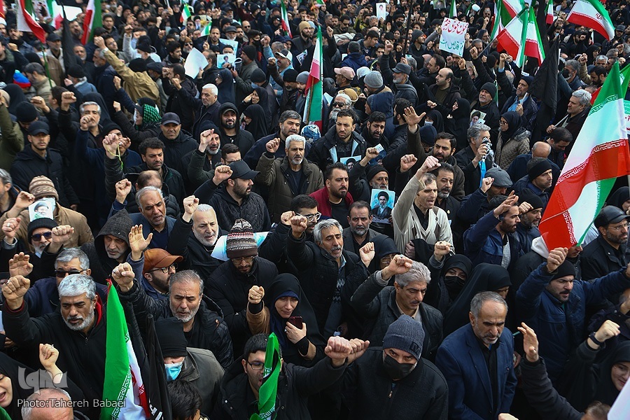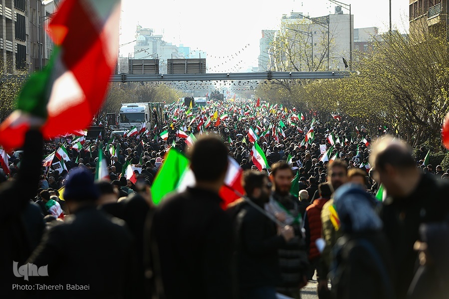 Wakati wa kuanza kwa hafla hiyo, mifumo ya ulinzi wa anga ya Tehran ilianza kufanya kazi baada ya kuoenekana ndege za kivita za adui. Wananchi hawakutishika na walitoa kauli mbiu za “Allahu Akbar” na “Mauti kwa Marekani,” na “Mauti kwa Israel”
