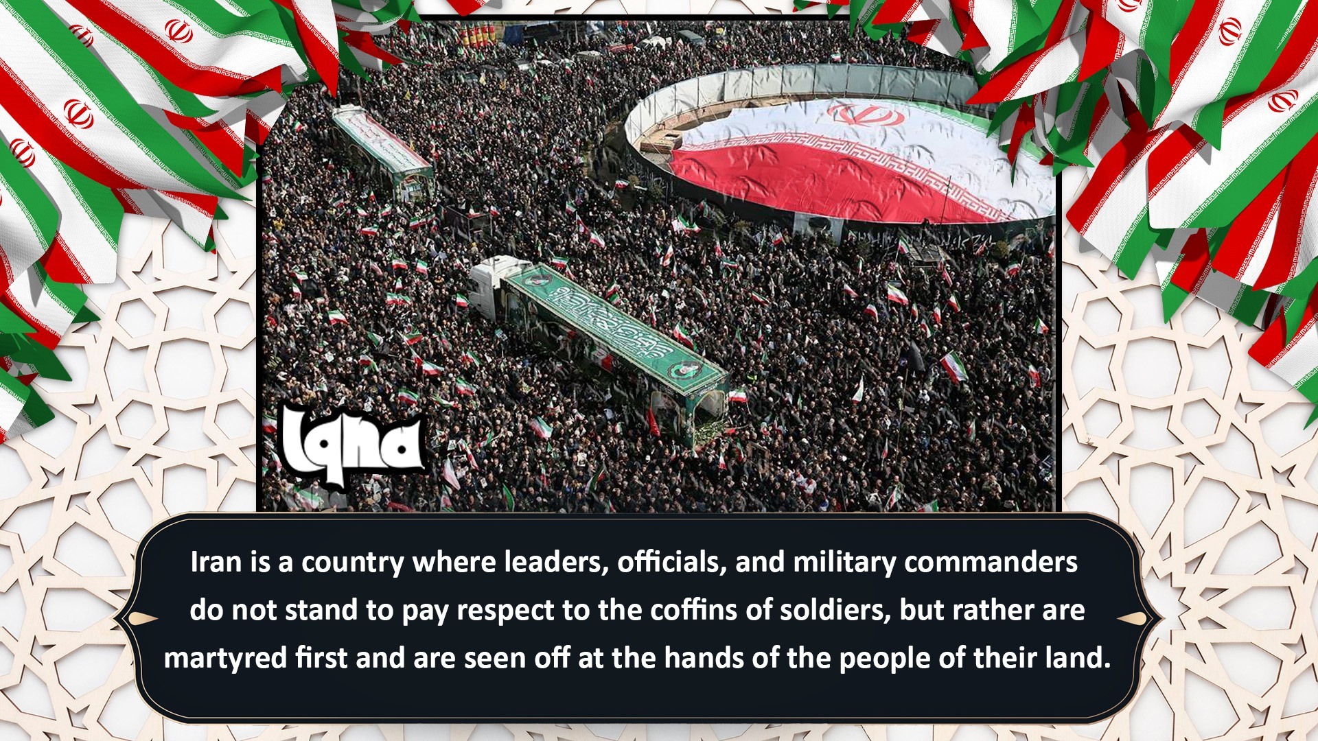 IQNA – Iran ni nchi ambayo viongozi, maafisa wa serikali na makamanda wa kijeshi hawasimami kutoa heshima kwa majeneza ya wanajeshi wao; badala yake mara nyingi wao hutangulia kuuawa shahidi, kisha wananchi wa nchi yao ndio huwapa mazishi na kuwaaga kwa heshima.