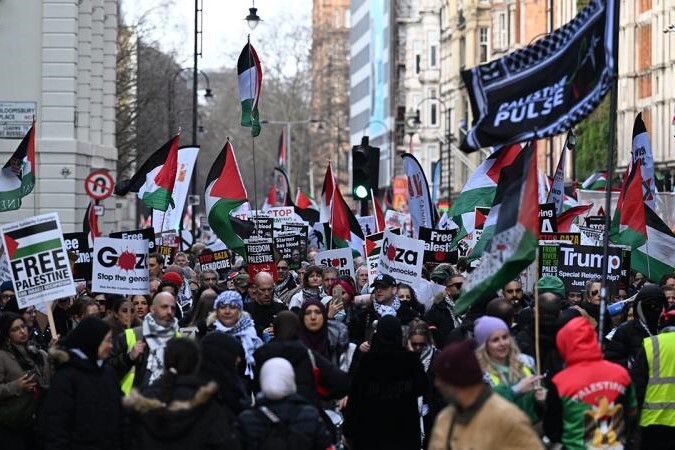 İngiltere'nin başkenti Londra'da toplanan on binlerce Filistin destekçisi, katil İsrail'in ateşkese rağmen Gazze saldırılarını sürdürmesine ve İngiltere'nin İsrail'e silah satışlarına devam etmesine tepki gösterdi.