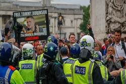 "There were scenes of violence which saw bottles, metal barriers and other objects thrown at officers," London's Metropolitan police said.