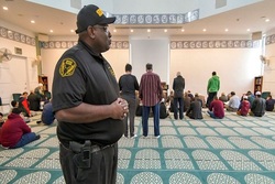 The security detail is on duty several hours every Friday, Saturday and Sunday during prayer times and weekend school for children, leaders of the mosque said.