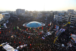 A huge sea of mourners, streaming from all the adjoining streets, descended on the iconic Engelab (Revolution) Square in central Tehran early Monday morning for a march to Azadi Tower.