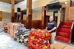 Every year the center hands out free packages inside the center but this year, due to the coronavirus outbreak, the packages are distributed outside.