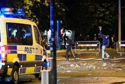 About 300 people were on the streets of Malmo with violence escalating as the evening wore on, according to police and local media.