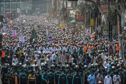 The rally was called by Islami Andolon Bangladesh (IAB), one of the country's largest Muslim parties, and started at the biggest mosque in the nation, which is around 90 percent Muslim.