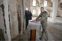 “Today, I presented the Holy Quran I brought from Mecca to the Aghdam mosque,” Aliyev, who was accompanied by his wife, said at the mosque.