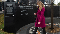 The three men were on hand for the dedication of a memorial to the six victims who died in the attack — Ibrahima Barry, Mamadou Tanou Barry, Khaled Belkacemi, Abdelkrim Hassane, Azzedine Soufane and Aboubaker Thabti.