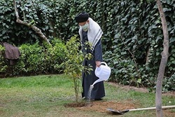 On the occasion of National Tree Planting Day and Natural Resources Week, Imam Khamenei planted two saplings this Friday morning.