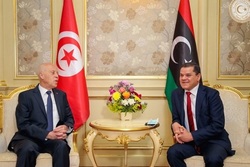 On the first such visit since 2012, the Tunisian president was due to meet Libya's new interim Prime Minister Abdul Hamid Dbeibah, who has been tasked with governing until December elections.