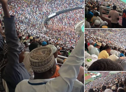 A large number of people came to watch the Quranic event, filling an entire football stadium.