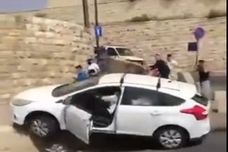 CCTV footage shows an automobile accelerating and swerving off to the side of the road, ramming a Palestinian man standing in the street, who appears to have participated in the ongoing protest in East Jerusalem al-Quds. The individual hurtles backwards and lands on the ground before hurriedly getting up and limping away. A crowd then forms around him and ushers him away.