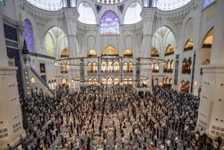 People perform Eid al-Adha prayers at Grand Camlica Mosque in Istanbul, Turkey.