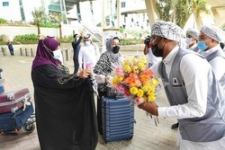 Pilgrims were greeted with gifts of dates, roses and Zam Zam water on arrival at the Kingdom's airports.