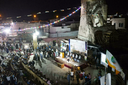 Several hundred people gathered at the site to mark the birthday of the Prophet Mohammad (PBUH), in a courtyard decorated with multicolored lights between the mosque with its gaping windows, surrounded by scaffolding, and the minaret -- only the base of which survived.