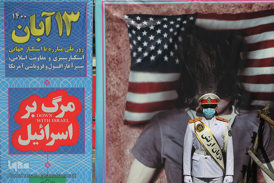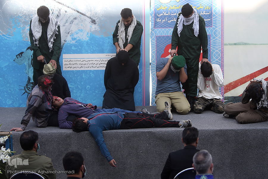 The day is being marked as the National Day of Fight against Global Arrogance. Photos below shod today's event held in front of the former US embassy in central Tehran.