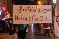 Pictures and footage that emerged from the Tuesday rallies in the capital Manama and elsewhere across the country showed protesters setting the flag ablaze, trampling on it, and holding up placards that read, “Naftali go out.”