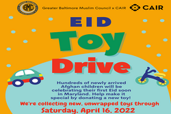 Hundreds of newly arrived Afghan children will be celebrating their first Eid al-Fitr in Maryland this year. CAIR and the Greater Baltimore Muslim Council are accepting new toys through Saturday, April 16.