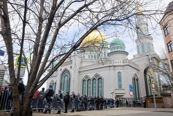 In Moscow, hundreds of city’s one million Muslims gather at the Russian capital’s largest mosque — the Cathedral Mosque — for prayers.