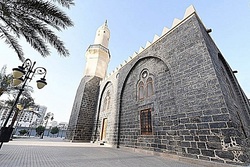 The mosque is covered from the outside with black basalt stones, and its domes and interior walls are painted white, while the arches are shaded in black to complete the mosque's beautiful appearance.