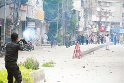 The trouble started when news about the alleged sacrilege spread like wildlife across city. All business and commercial centers were shut immediately. Enraged youth gathered outside the plaza.
