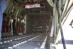 It was taken from Najaf to Karbala in a ceremony and then loaded on a cargo airplane belonging to the Iraqi air force at the Najaf International Airport.