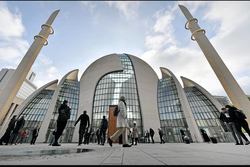 The Central Mosque, a modern building with two tall minarets, is located on a busy road in Ehrenfeld district just west of the city center. The massive glass and concrete structure – designed as a flower bud – has room for 1,200 worshippers.