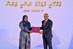 President Ibrahim Mohamed Solih conferred the awards at the reception held at Dharubaaruge in Malé,, the capital.