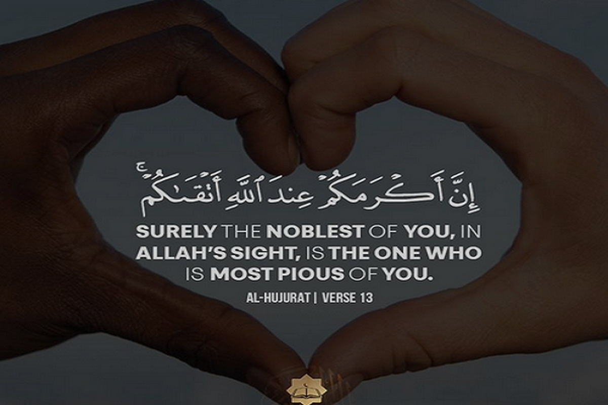 God says in Verse 13 of Surah Al-Hujurat: “People, We have created you all male and female and have made you nations and tribes so that you would recognize each other. The most honorable among you in the sight of God is the most pious of you. God is All-knowing and All-aware.”