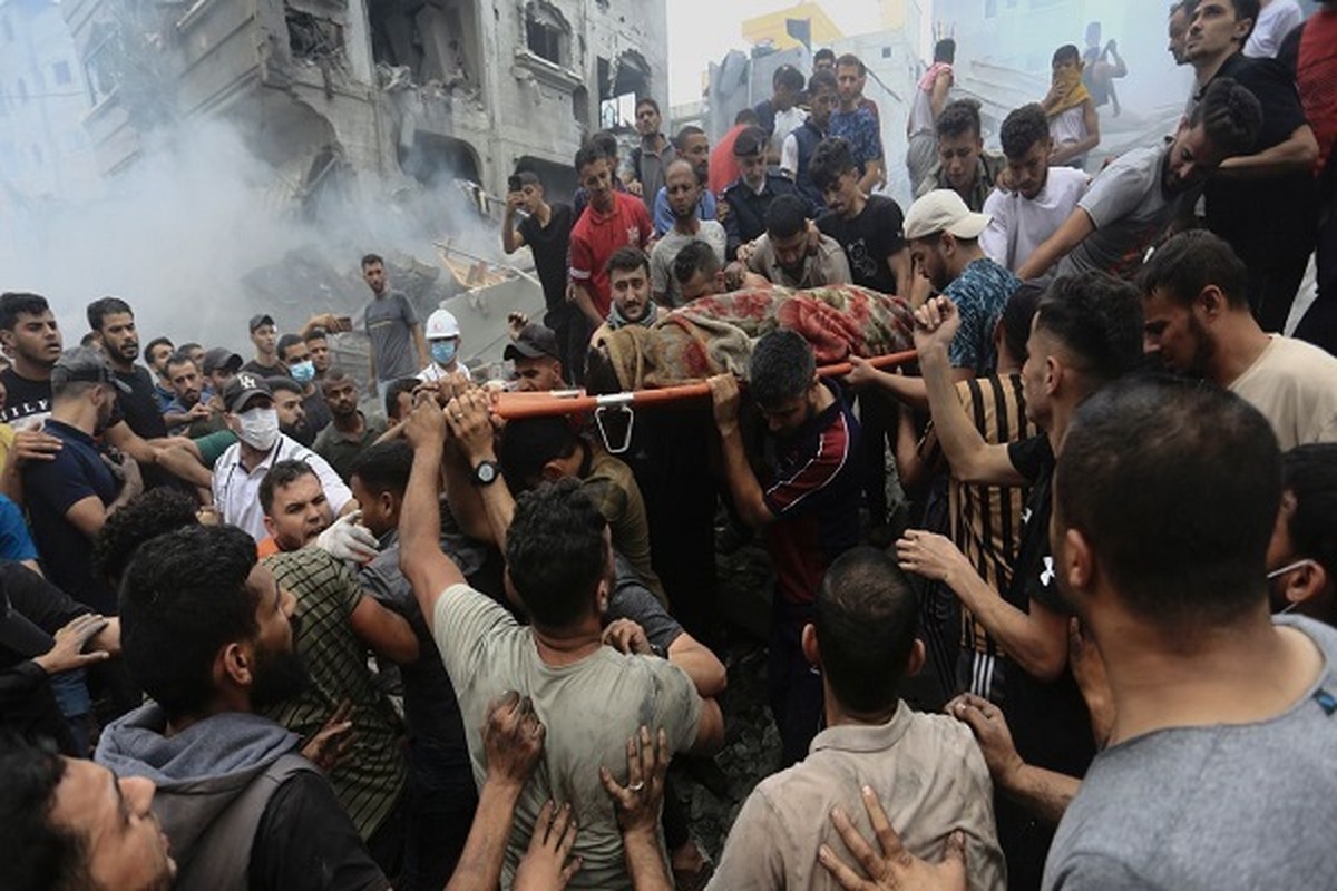 Here we stand together with the Islamic Ummah and states and nations of the world, scholars, academicians and elites of Islamic countries and all religions of the world to adopt a humane, revolutionary and unified position to support Palestine and its brave people and the oppressed (people) of Gaza calling for an end to the usurpation of the Islamic land of Palestine and urging the international assemblies to end the massacre of children, women, the sick and the innocent and warning the usurpers of the Islamic lands and their supporters that if they don't stop their oppression and crime, they will be destroyed in the storm of divine wrath and the volcano of anger of the Islamic nation and the axis of resistance, and let them know that the era of compromise and submission is over and the era of awakening, jihad, martyrdom and victory has arrived.