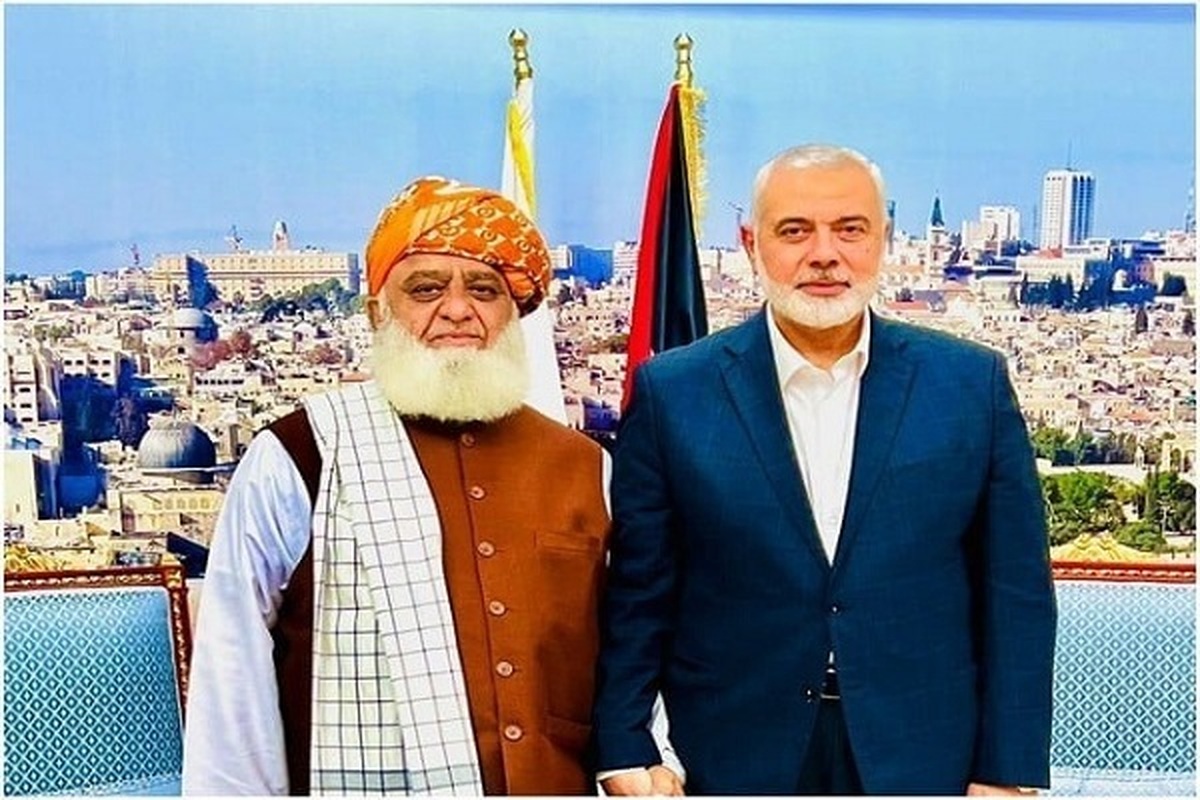 According to a tweet posted by the Jamiat Ulema-e-Islam-Fazl (JUI-F) on social media platform X, party chief Maulana Fazlur Rehman met with Hamas chief Ismail Haniyeh and senior leader Khaled Mashal in Doha, Qatar, and discussed with them the ongoing situation in Gaza.