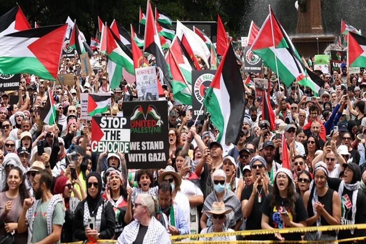 Tens of thousands of pro-Palestine protesters flooded the park, calling for a ceasefire in the Gaza Strip and condemning the Israeli regime’s occupation of the Gaza Strip.