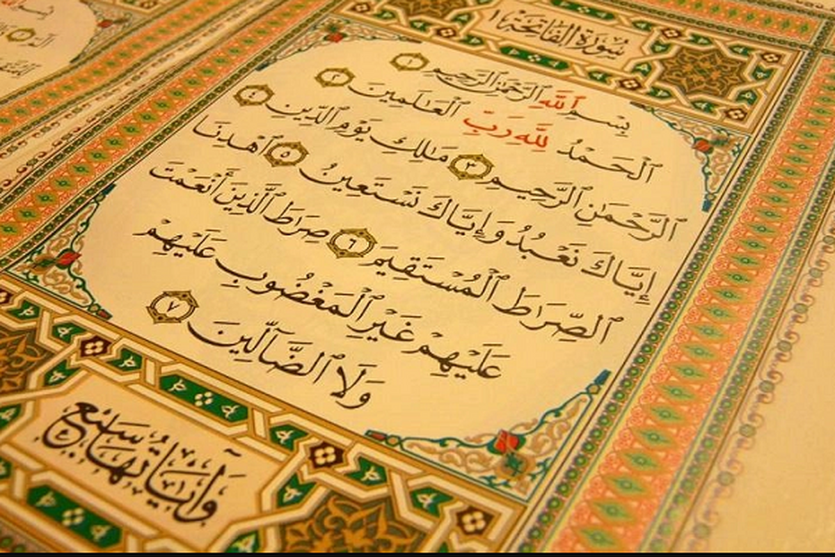 “In the Name of Allah, the Beneficent, the Most Merciful. All praise belongs to God, Lord of the Universe, the Beneficent, the Merciful, and Master of the Day of Judgment. (Lord), You alone We do worship and from You alone we do seek assistance. (Lord), guide us to the right path, the path of those to whom You have granted blessings, those who are neither subject to Your anger nor have gone astray.”