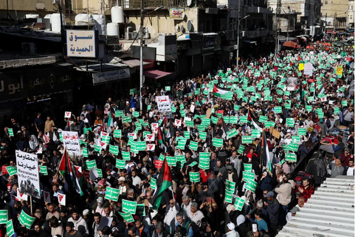 The march began after the Friday prayer in front of the Grand Husseini Mosque in the center of the capital, Amman, and proceeded to Palm Square, an Anadolu Agency correspondent reported.