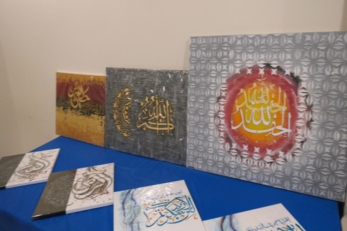 The exhibition features Arabic calligraphy, henna artwork, paintings and traditional clothing.
