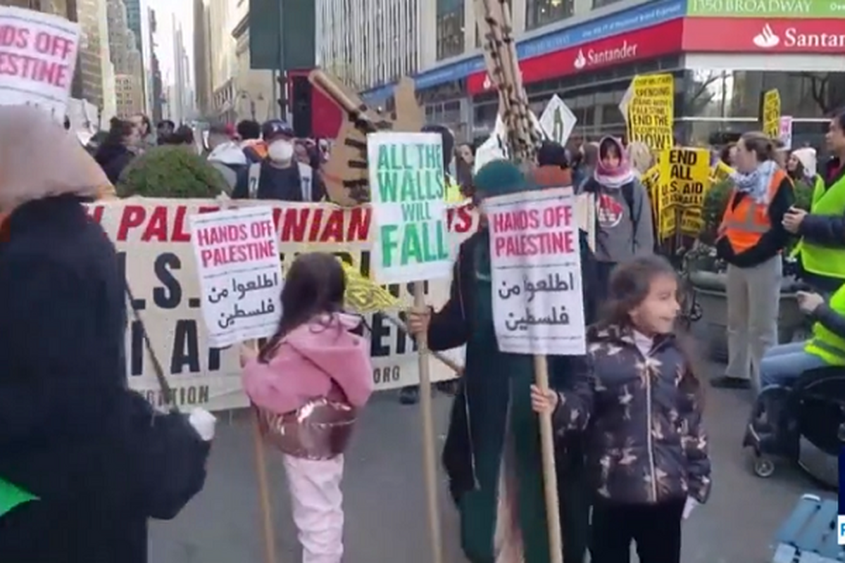 The protesters rallied on Saturday to show their solidarity with Palestinians and demand an immediate ceasefire in the besieged Gaza Strip.