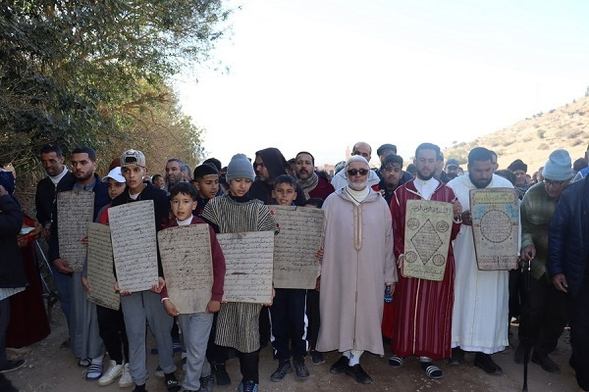 In this ritual, called Sadaqa, young memorizers of the Quran along with men of the city holding wooden tablet with verses of the Quran on them walk to the Sidi Othman mosque of the city.
