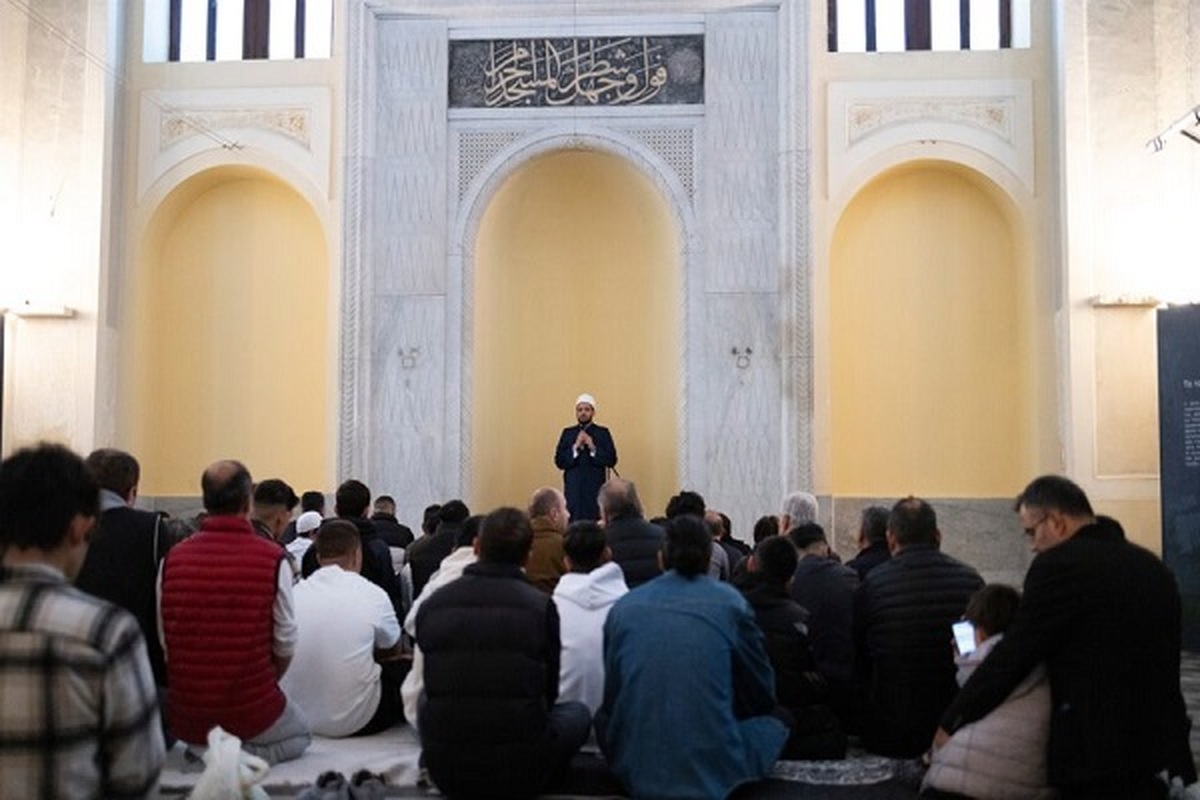 Security was tight around the site, which welcomed more than 100 Muslims marking the end of the holy month of Ramadan.